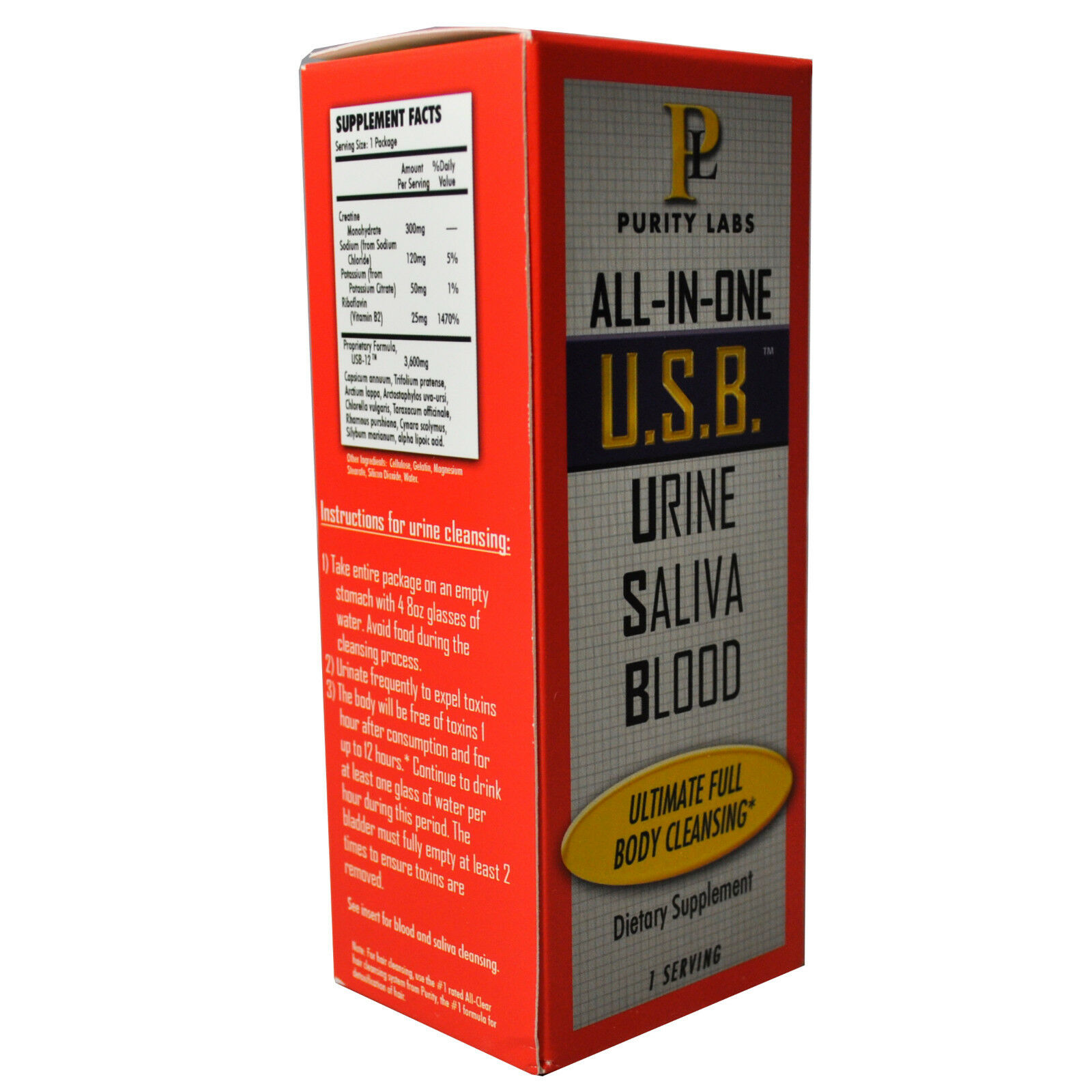 Urine, Saliva, Blood Ultimate Full Body Cleansing. Liquid drinks work by temporarily reducing the appearance of levels of toxins in the body. While this process is effective in the short term, it does not have a large impact on bodily systems and lasts only for short periods of time. USB is a specialized combination of ingredients that stimulates the body’s natural removal of toxins from the body in a natural and supportive manner. After consumption of USB, the body is free to create a total decrease in specific toxins remaining in the body. Because natural elimination is greatly increased, there is a large window of time in which multiple bodily systems will have a natural removal of impurities. The net result is superior levels of cleanliness for a longer period of time.