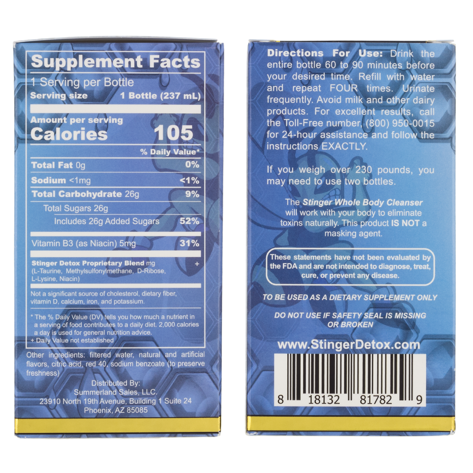 Avoid all toxins 48 hours prior to using this product. Drink the entire bottle 60 to 90 minutes before your desired time. Refill with water and repeat four times. Urinate frequently. Avoid milk and other dairy products. If you weigh over 230 lbs, you will need two bottles. To be used as a dietary supplement only.