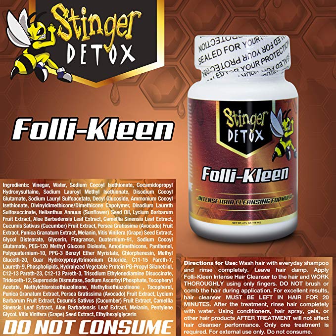 Stinger Folli-Kleen Hair Cleanser is formulated to provide a deep and thorough clean. Toxins can accumulate everywhere, including hair. Folli-Kleen Intense Hair Cleaner is intended for those who do not want to risk the consequences of exposure to toxins.